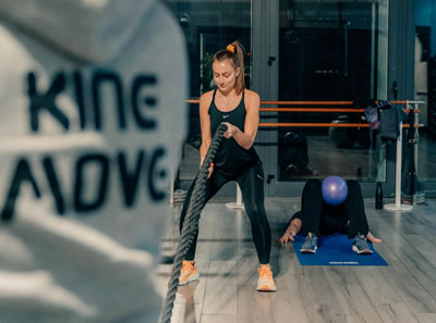 Allenamento funzionale ad alta intensità, alternando esercizi a corpo libero all’uso di piccoli attrezzi.